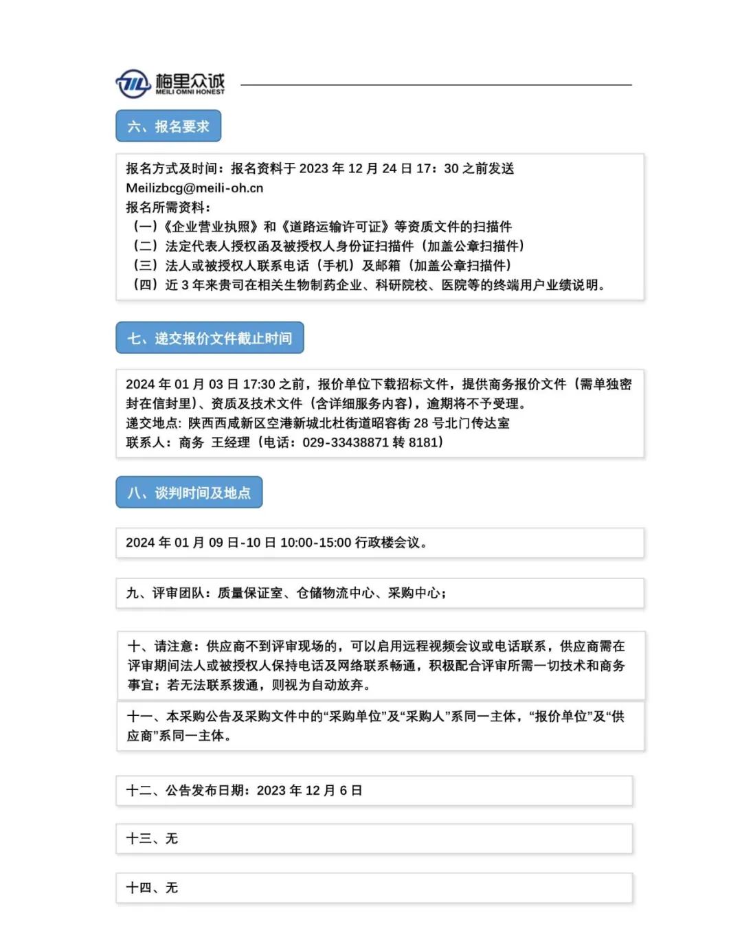 陜西梅里眾誠動物保健有限公司-獸用生物制品冷鏈運輸服務招標公告